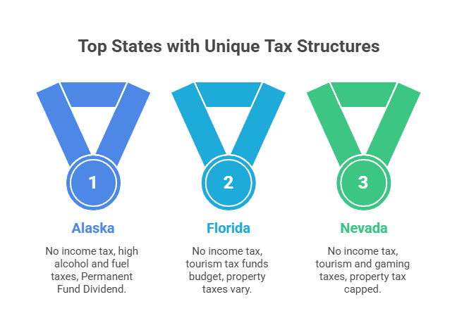 States without an income tax often have significantly higher property, sales, or excise taxes. Your “savings” are often just redistributed.