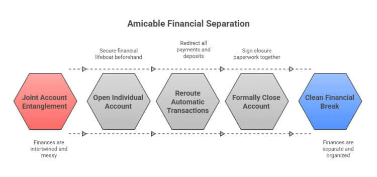 Untangling shared finances is always stressful, but it’s a necessary step toward financial independence and security. Remember the key principles: you must close the jointly owned bank account, not just remove a name. And you are fully liable until it’s closed.