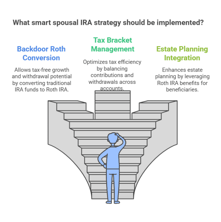 If your household income is too high to contribute to a Roth IRA directly (the MAGI phase-out for 2025 starts at $230,000 for joint filers, according to the latest IRS announcements), you can use the Backdoor Roth IRA strategy for the non-working spouse.