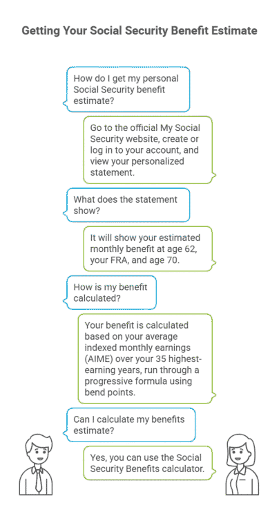 Your benefit is calculated based on your average indexed monthly earnings (AIME) over your 35 highest-earning years, run through a progressive formula using bend points.